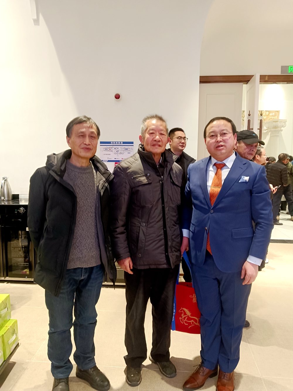 湖北省商务厅原正厅级巡视员杨育顺、驻会副会长刘永宁应邀出席大会,并与武汉名牌战略促进会会长石虎合影留念。