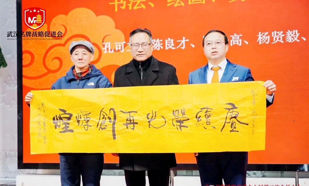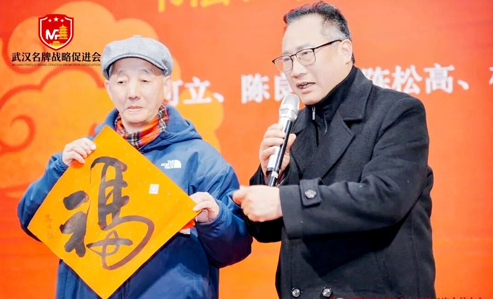 文化赋能品牌,雅韵彰显底蕴。大会特别举行文化大使聘任仪式,会上颁发荣誉证书,名牌会文化宣传大使:孔可立、杨建、叶升平、谭玥、陈明友、杨贤毅、聂瑛、李云中、李星旺、马丽、金丰11位文化大使荣聘。邀请孔可立、陈良才、陈松高、杨贤毅、李星旺等书画剪纸名家现场创作并赠送作品,笔墨丹青间传递荆楚文化与品牌精神的深度融合;杨建朗诵经典《将进酒》气势磅礴大气恢宏,聂瑛现场作诗、姜汉芸深情朗诵,以诗意语言礼赞名牌发展,为大会增添浓厚文化氛围。